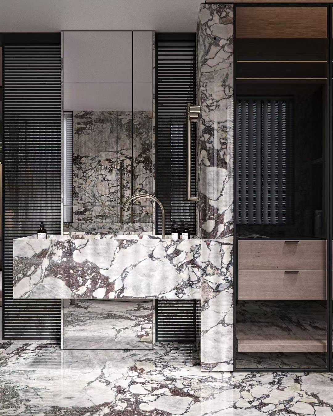 Sourced from Italy, Calacatta Viola is a marble that really stands out, with deep plum and burgundy veins flowing across a crisp white canvas. Each slab has its own rhythm of flowing lines, giving the stone movement, character, and depth. Perfect for kitchen benchtops, bathrooms, feature walls or flooring, this marble brings bold elegance and a bit of drama to any space.